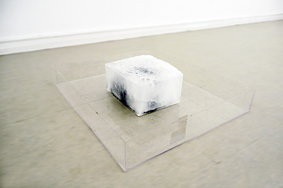 2012, "lava-sculpture in ice / drift" Lava-sculpture in a block of ice in acrylic container, melted at Gallery Knecht and Burster, Karlsruhe, 2012, June 22